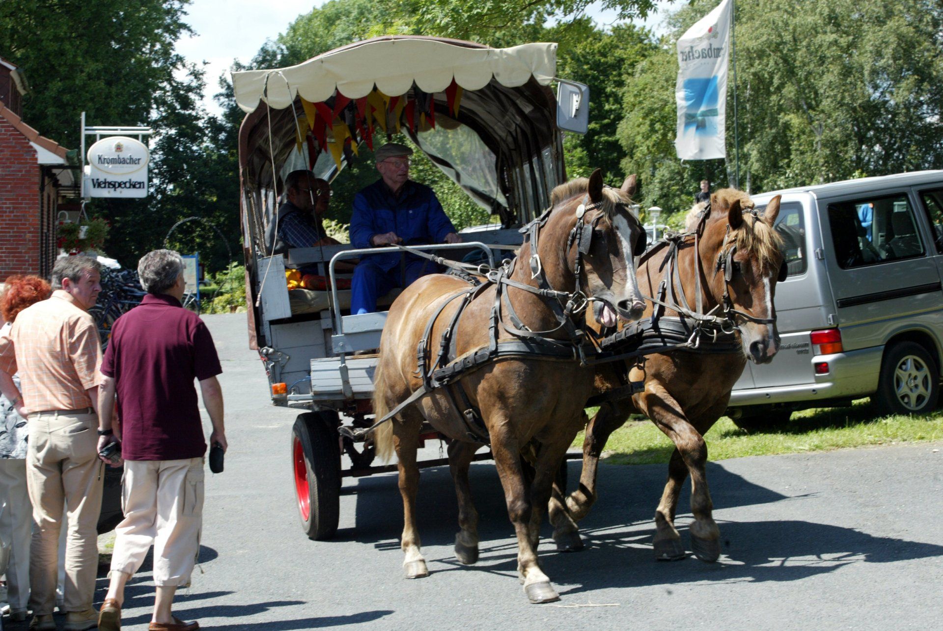 Die Urlauber kamen zuerst mit Booten und bevölkerten sozusagen zuerst die Wiesen neben der Hamme. Aus den Booten wurden Hauszelte in denen man schlief. Aus den Zelten wurden Wohnmobile und Wohnwagen. Der älteste Wohnwagen ist immer noch da. Später entstand dann der Campingplatz, der sich Wochenenderholungsgebiet Viehspecken nennt. Unser dazu gehörendes Landgasthaus ist auch unter dem Namen Viehspecken bekannt.